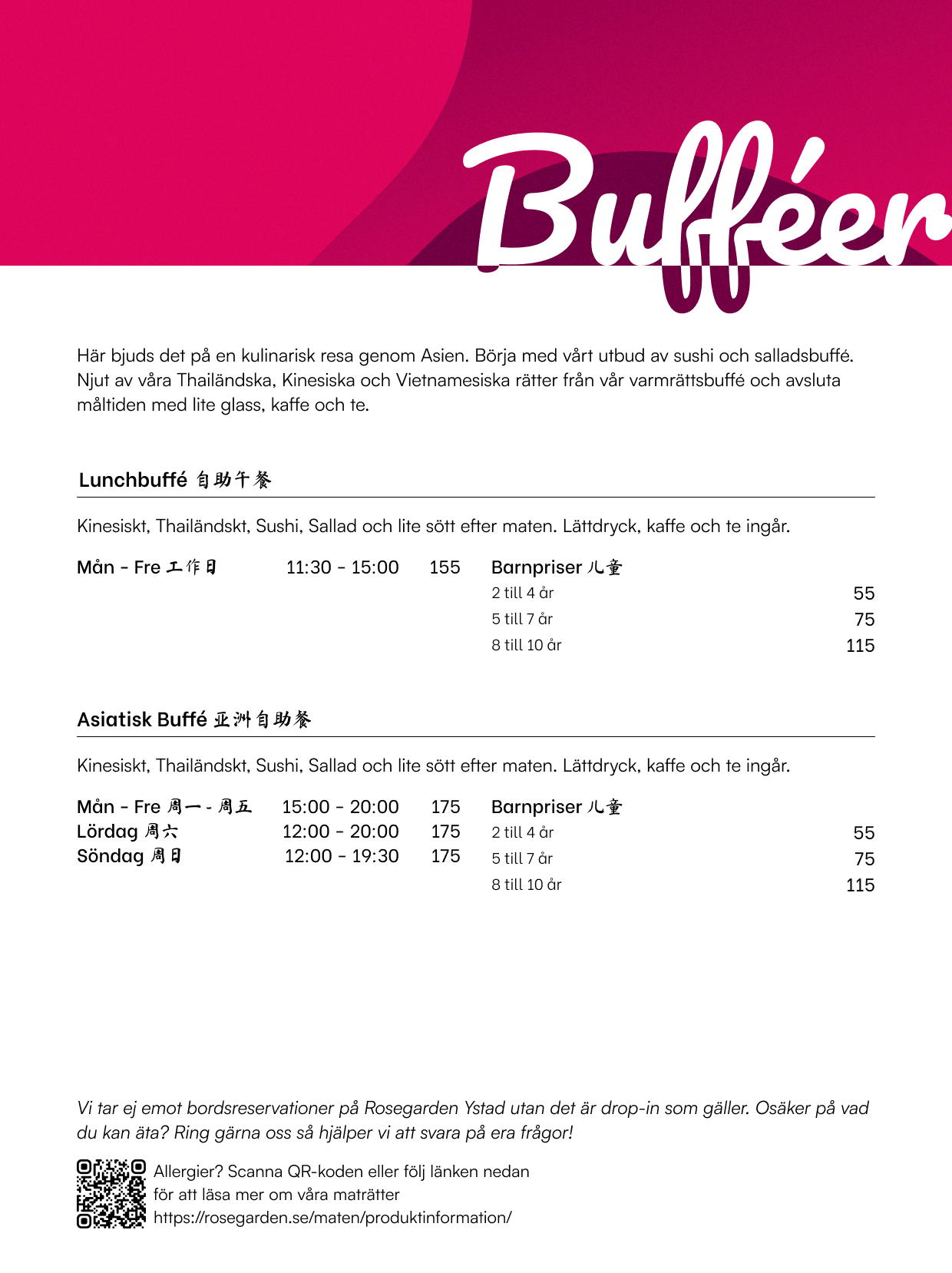 Kampen har kommit till Ystad! Vi erbjuder Ystadsborna och resenärer en färgsprakande buffé med ett tiotal olika rätter som serveras dagligen!